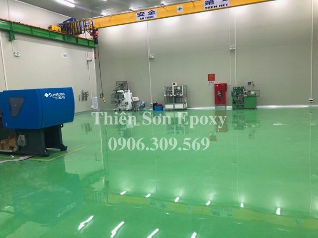 Nhà xưởng sử dụng sơn epoxy tự san phẳng màu Green