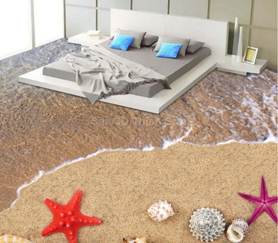 32. Cả bãi biển thơ mộng ngay trong phòng ngủ của bạn với mẫu sàn 3d thứ 32.
