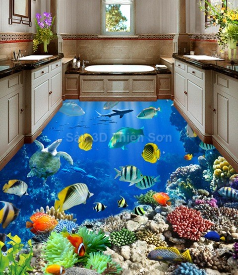 - Với sàn 3D, việc biến không gian nội thất trong ngôi nhà của bạn thành một bãi biển thơ mộng với sóng và cát trắng, một đáy đại dương với những rặng san hô tuyệt đẹp hay một thác nước trong lành với những chú cá đang tung tăng bơi lội.... đã trở thành sự thật ngay trong ngôi nhà của bạn.