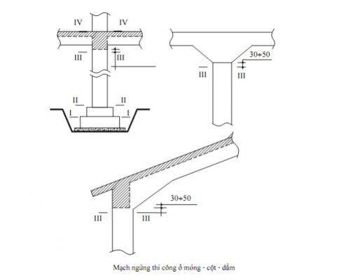 Do mạch ngừng ảnh hưởng đến tính toàn khối của bê tông, nên tốt nhất là thi công liên tục không để mạch ngừng. Khi bắt buộc phải để, vị trí của nó phải được khống chế trong miền kết cấu có nội lực nhỏ hoặc nội lực không gây nguy hiểm cho kết cấu tại tiết diện mạch ngừng.