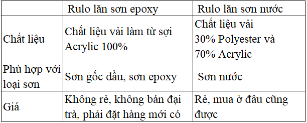 *Bảng so sánh giữa rulo lăn sơn epoxy và rulo lăn sơn nước thông thường